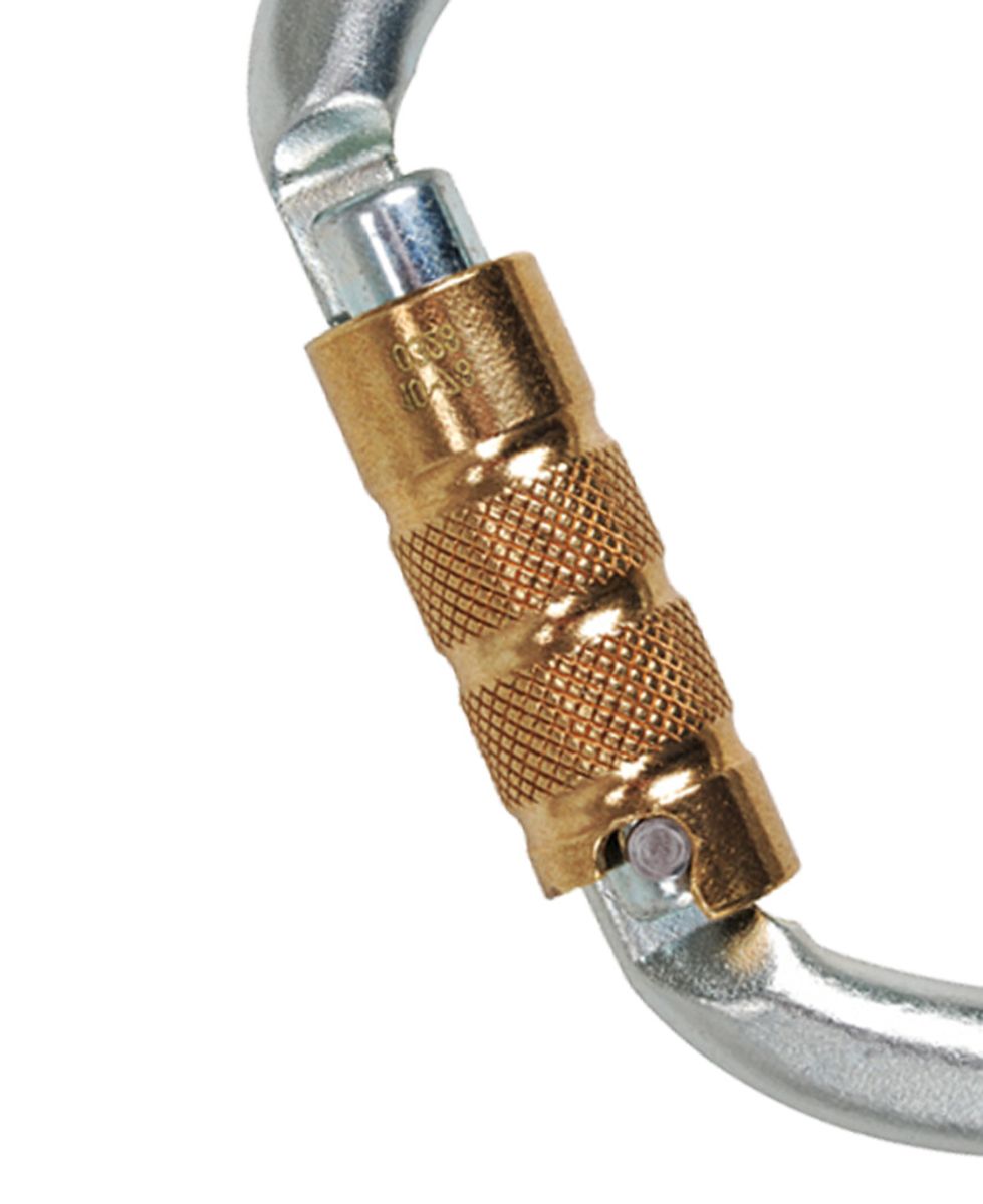 Der Steel Strong Triple erfüllt die Anforderungen der DIN EN 362 und ist damit für viele Anwendungen im Bereich Arbeitsschutz und Höhenarbeit zugelassen. Die sehr hohen Bruchlastwerte geben dir eine große Sicherheitsreserve in kritischen Situationen.