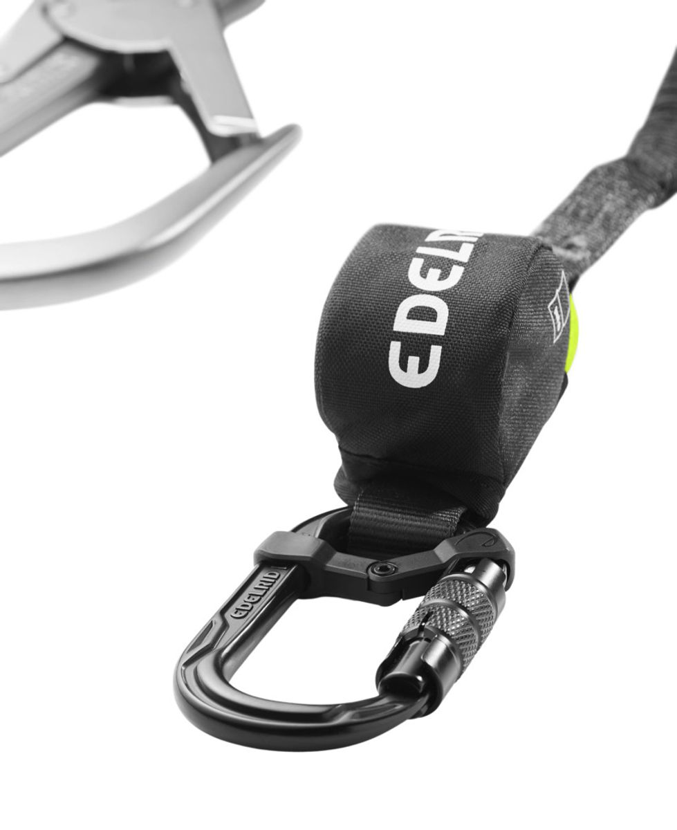 Das SHOCKSTOP-LITE-I 140 GIANT von Edelrid ist ein I-Verbindungsmittel mit elastischem Arm und DSG 2500 GIANT Handballenkarabiner. Das Set wurde speziell für den Einsatz im Gerüstbau entwickelt und kombiniert kompakten Bandfalldämpfer mit einem großen Alu-Karabiner für einfache Handhabung.