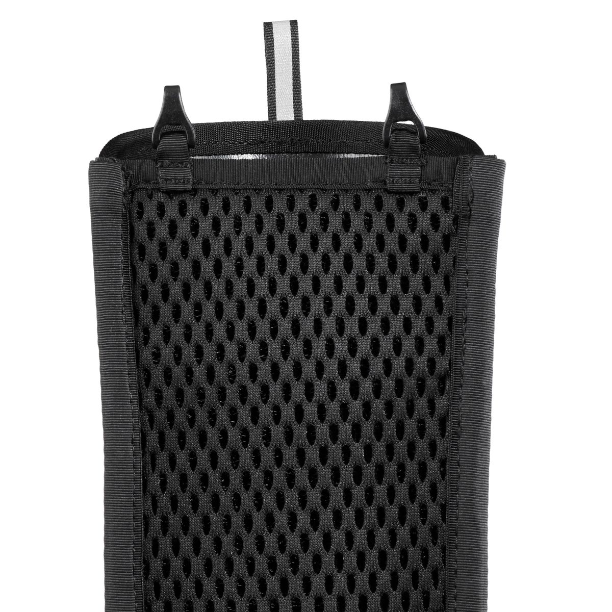 Der Köcher besteht aus strapazierfähigem Ripstop-Gewebe (90% Polyamid, 10% Polyester), das den Anforderungen des Trails standhält, ohne dich zu beschweren. Das Rückenteil ist mit 3D-Mesh versehen, das die Luftzirkulation zwischen Köcher und Rücken verbessert und somit Komfort bei langen Touren erhöht.