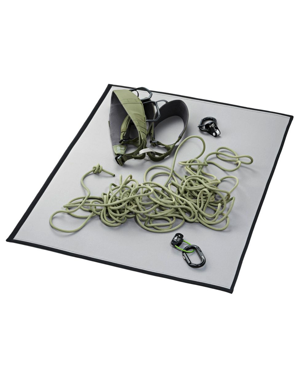 Hergestellt aus robustem Planenstoff (100 % Polyester) steht der Sack für hohe Langlebigigkeit und Langlebigkeit. Die feste Schaummatte wird per Klett gehalten und kann bei Bedarf herausgenommen werden, etwa als Sitzunterlage oder zum sauberen Ablegen und Sortieren deines Materials.