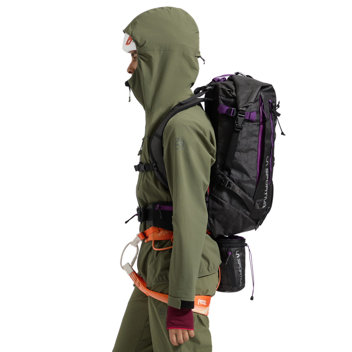 Dank des strapazierfähigen Challenge Sailcloth Ultra-Gewebes meistert der Rucksack raues Gelände, Fels und Eis, ohne unnötiges Gewicht hinzuzufügen. Die kompakte Form und die durchdachte Ausstattung machen ihn zum verlässlichen Begleiter bei wechselnden Bedingungen.