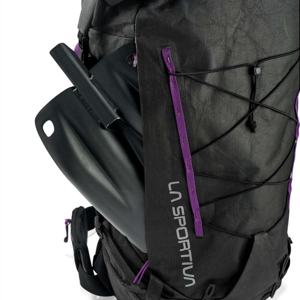 Die sekundäre Seitenöffnung ermöglicht schnellen Zugriff auf Ausrüstung, während der Top-Zugang ein klassisches Packverhalten erlaubt. Alle Features sind praxisorientiert und unterstützen schnelle Handgriffe im alpinen Einsatz.