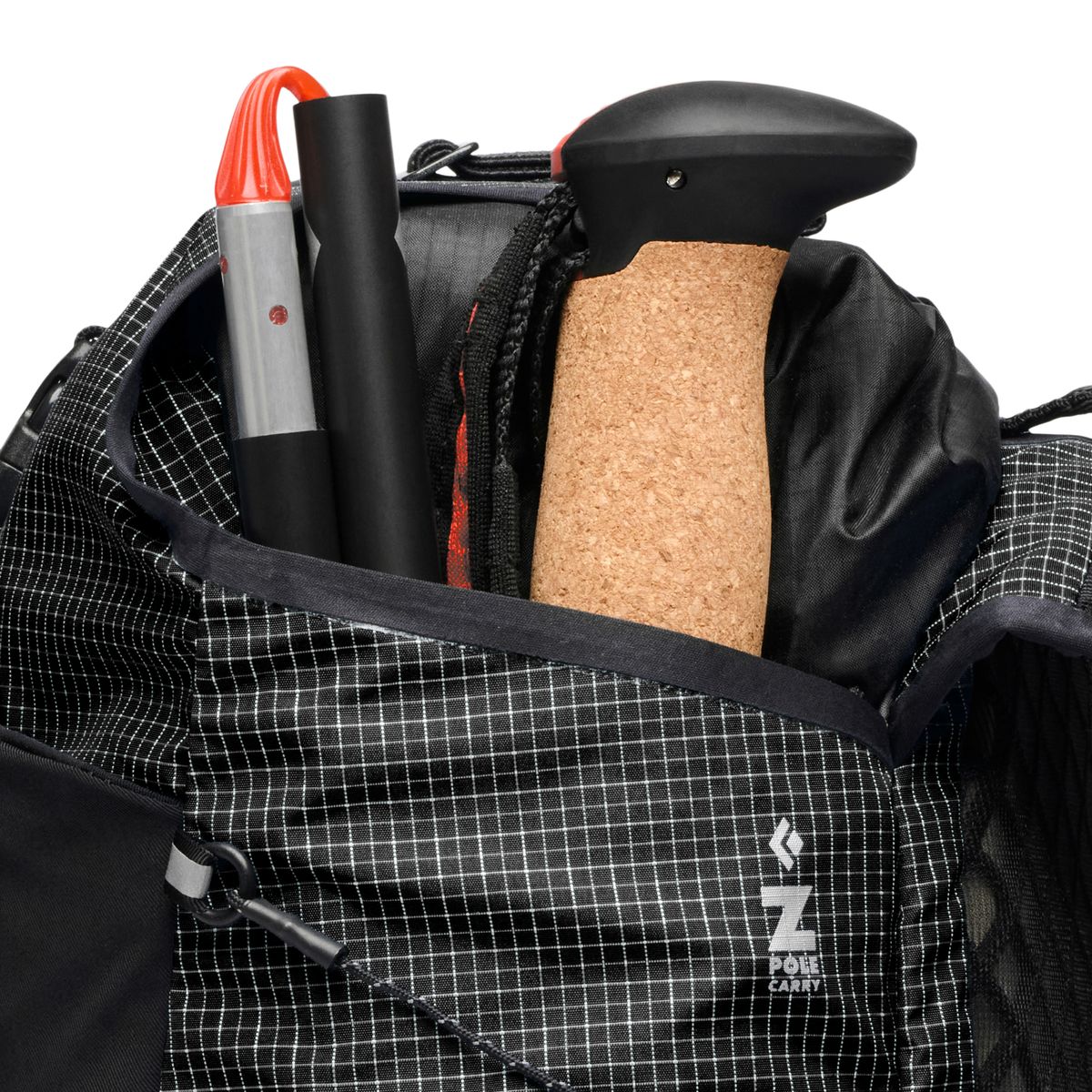 - In den Rucksack integriertes sicheres Z-Pole-Tragesystem