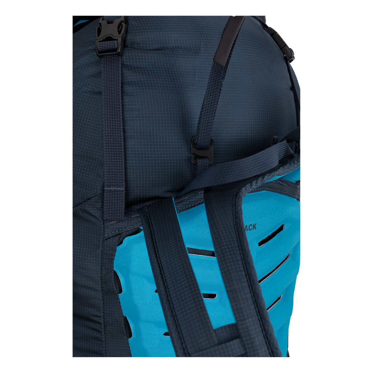 Das Dry Back Contact Tragesystem kombiniert ergonomische EVA-Polsterung mit 3D-Lüftungskanälen, reduziert die Auflagefläche am Rücken und verbessert die Luftzirkulation - so schwitzt du weniger und sitzt stabil. Das kompakte Design mit integriertem Zugsystem fixiert die Last nah am Körper und sorgt für bessere Bewegungsfreiheit in technischem Gelände.