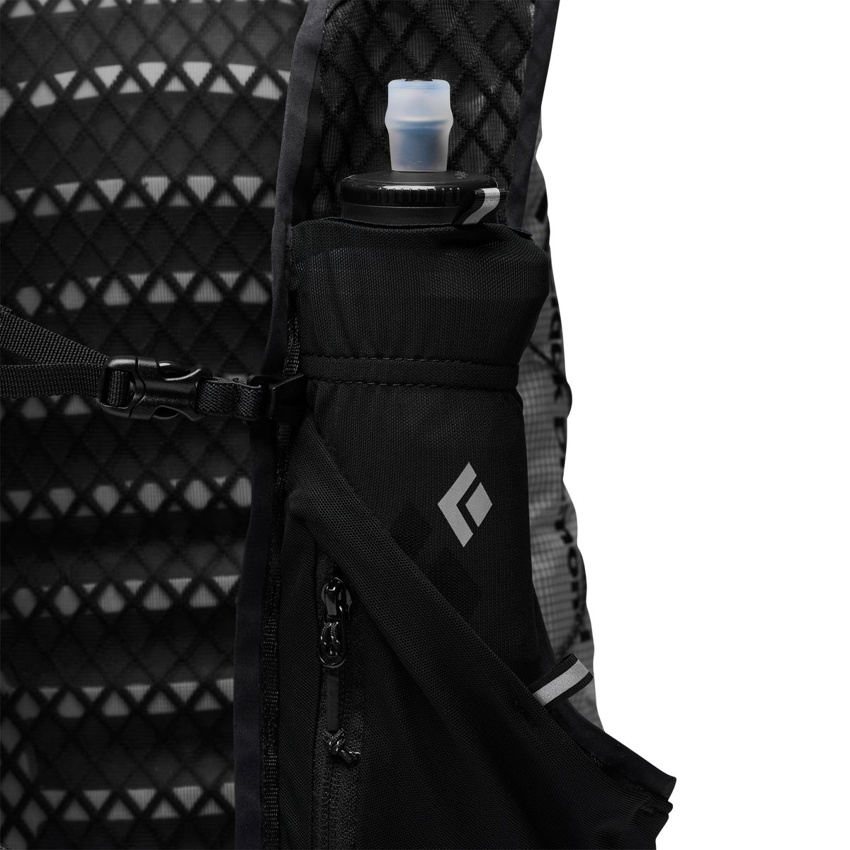 Der Rucksack bietet zwei Vorrichtungen für Trinkblasen sowie Softflask-Halterungen am Schulterträger (Softflasks nicht im Lieferumfang). Ein Reißverschlussfach am Schulterträger ermöglicht das sichere Verstauen kleiner Gegenstände.