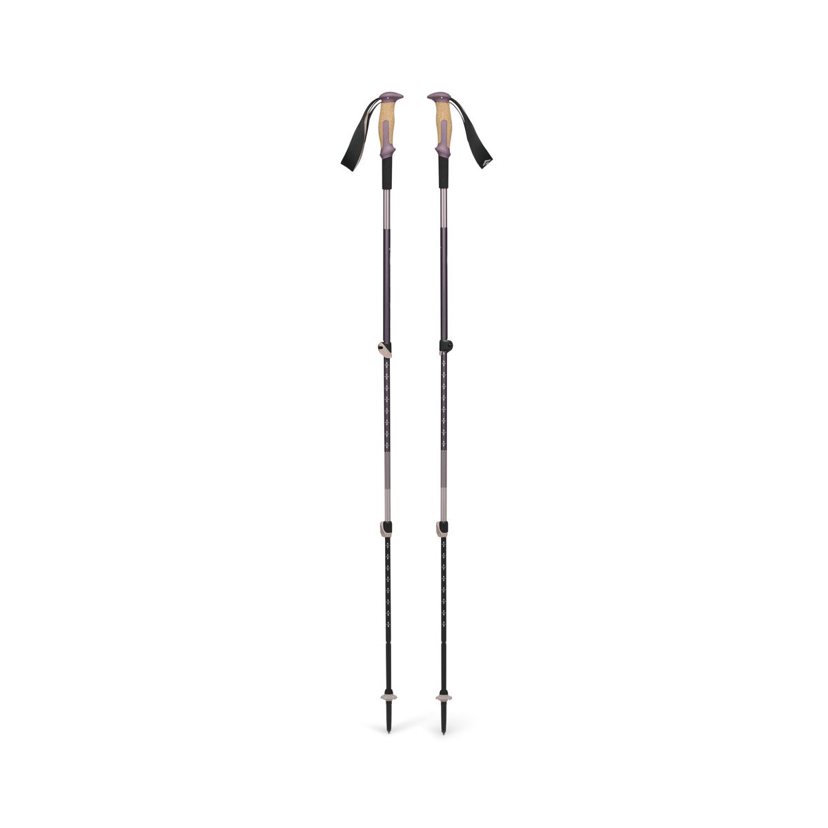 Gewicht pro Paar: ca. 268 g. Packmaß (ca.): 73 x 11 x 6 cm. Größenbereich: 100-140 cm (verstellbar). Farbe: Dark Mauve - Deep Woods. Herkunft: Taiwan. Zusammensetzung: Griffe aus Polypropylen/TPR mit Kork, Elastolan-Dämpfer, Polyester/Nylon-Schlaufe, Aluminium-Schaft, Nylon-FlickLock, Nylon-Flex Tip, EVA-Basket, Carbide/Steel-Spitze.