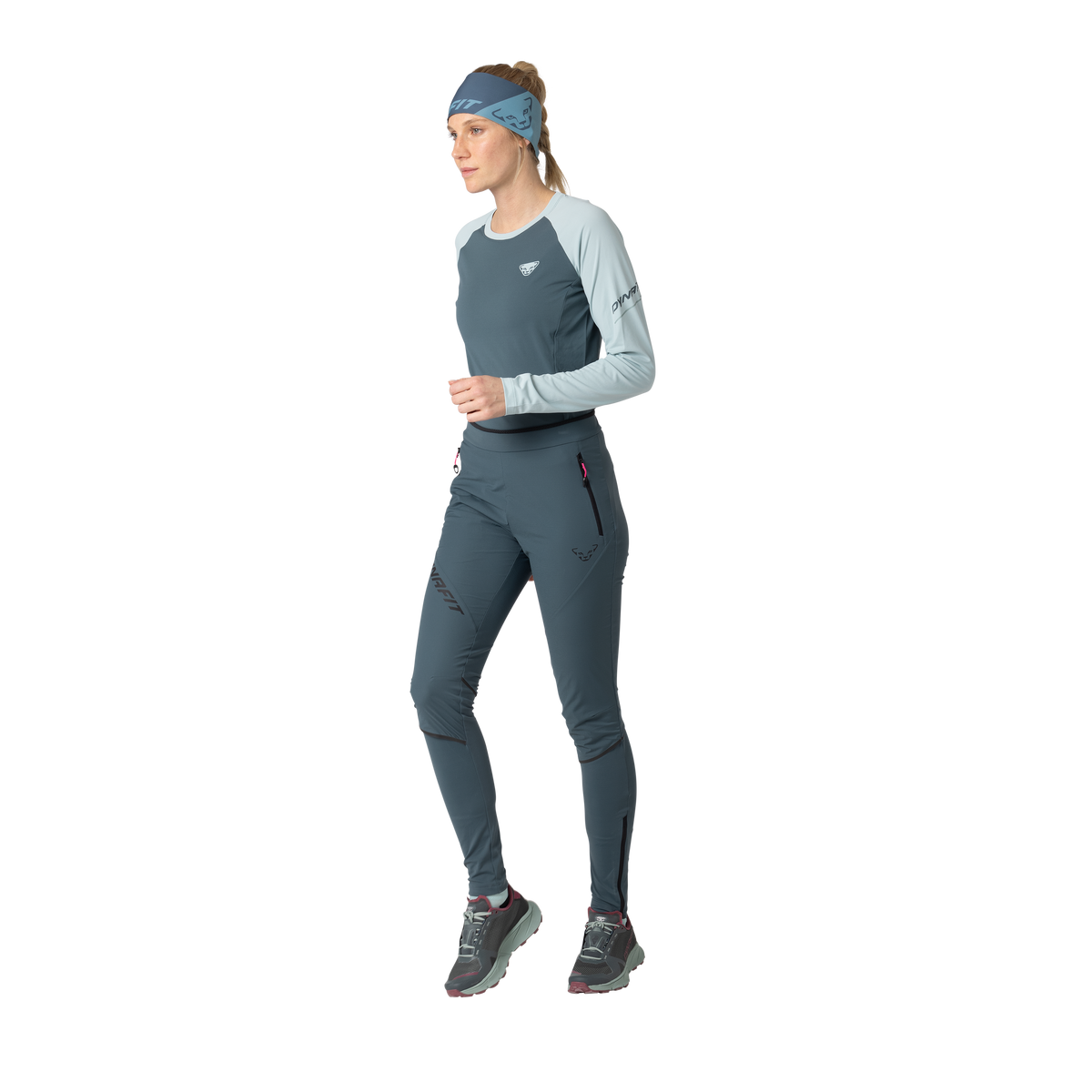 Die Alpine Hybrid Hose für Damen von DynaFit ist die ideale Begleitung für alle Sportlerinnen, die gerne in den kühleren Jahreszeiten draußen unterwegs sind. Die Hose ist speziell für das Trail Running konzipiert und bietet zusätzlichen Windschutz an den Oberschenkeln.