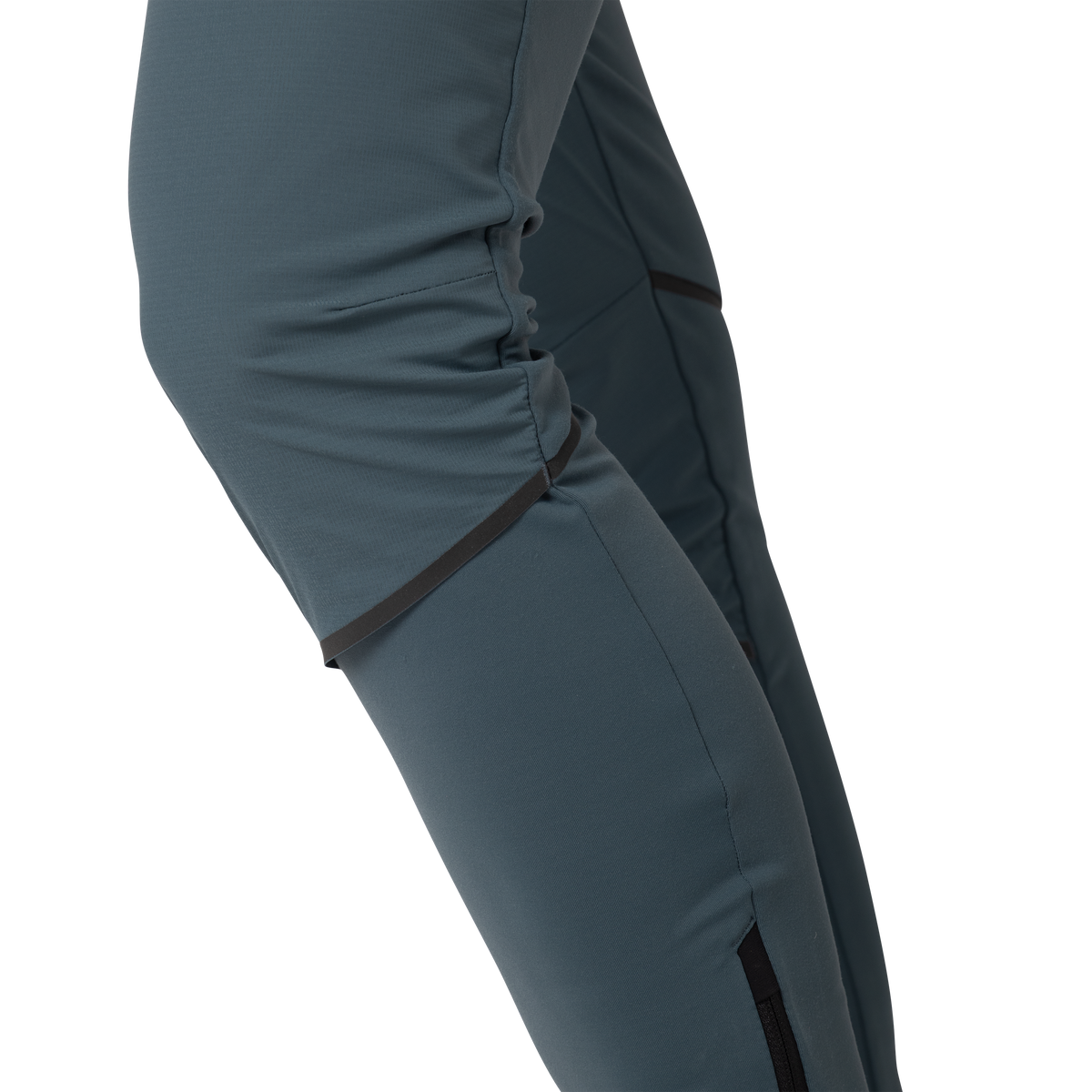 Hybrid Konstruktion. Atmungsaktiv. Windabweisend. Wasserabweisend. Einschubtaschen mit Reißverschluss. Smartphone Tasche . Erweiterbarer Saum. Hüftregulierung. Artikulierte Knie. Reflektoren. Micro Perforation. Aktive Ventilation