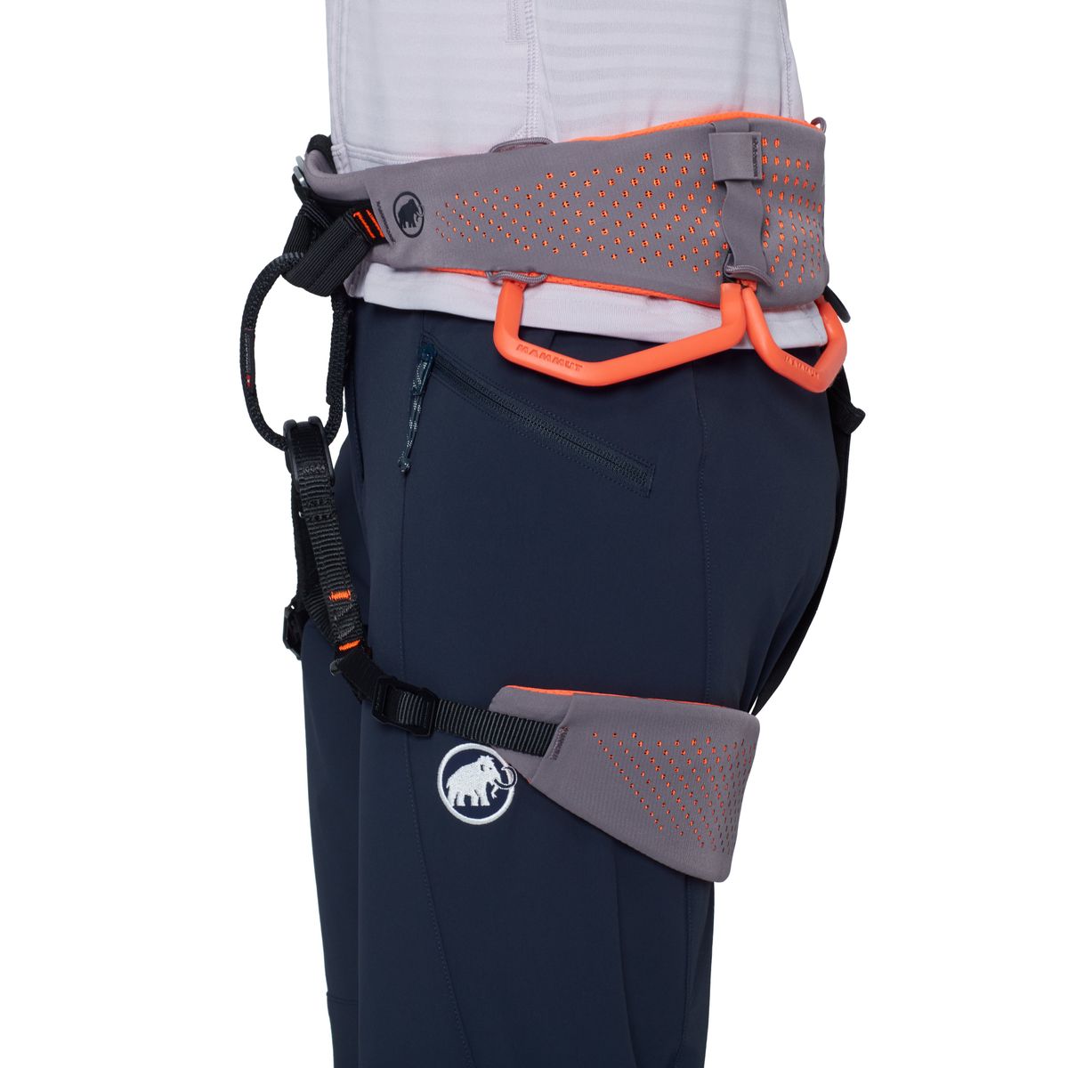 Für Komfort und Einsatz am Berg sorgen Zwickeleinsatz im Schritt, Beinabschluss mit Zwickel und Reißverschluss, asymmetrisch geformter Saum für bessere Passform über Bergschuhen sowie ein verstaubarer Befestigungshaken. Die Beintasche ist klettergurtkompatibel.