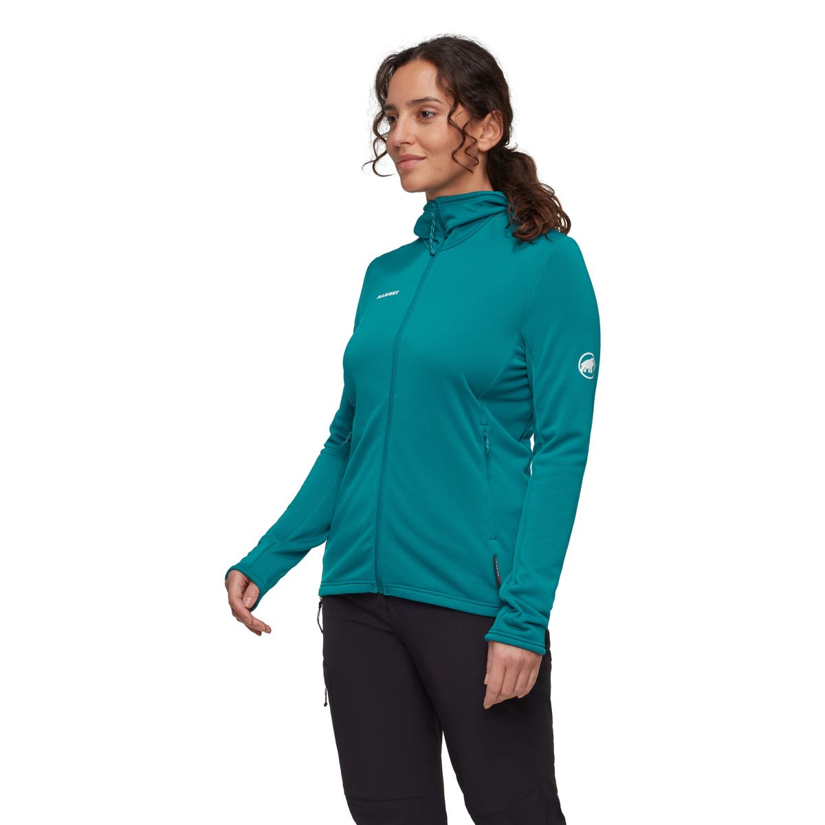 Aufgrund der enganliegenden, sportlichen Passform kannst du die Jacke sowohl allein oder als Mittelschicht unter einer Wetterschutz- oder Isolationsjacke tragen. Auch passt die Kapuze unter einen Helm und hat auf der Rückseite eine kleine Öffnung für deine Haare.