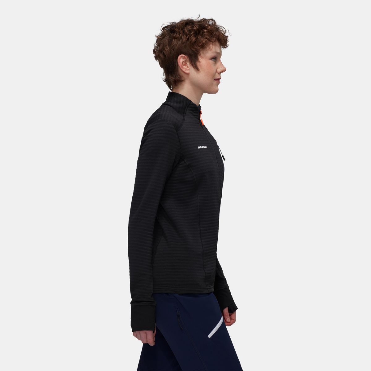 Die Mammut Taiss Light ML Jacket Women ist eine wärmende Zwischenschicht, die das ganze Jahr über für alle Bergaktivitäten geeignet ist. Mit ihrem 4-Wege-Stretchfleece und einem vorgeformten Schnitt bietet sie optimale Bewegungsfreiheit und Abriebfestigkeit. Der glatte Außenstoff ermöglicht es, die Jacke als Schicht unter einer Wetterschutzschicht zu tragen. Das Material ist atmungsaktiv, trocknet schnell und bietet einen hohen Tragekomfort dank Flachnähten. Mit hoch platzierten, klettergurtkompatiblen Taschen und Daumenschlaufen ist die Taiss Light ein hochfunktionales und vielseitiges Kleidungsstück.
