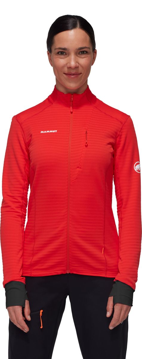 Die Mammut Taiss Light ML Jacket Women ist eine wärmende Zwischenschicht, die das ganze Jahr über für alle Bergaktivitäten geeignet ist. Mit ihrem 4-Wege-Stretchfleece und einem vorgeformten Schnitt bietet sie optimale Bewegungsfreiheit und Abriebfestigkeit. Der glatte Außenstoff ermöglicht es, die Jacke als Schicht unter einer Wetterschutzschicht zu tragen. Das Material ist atmungsaktiv, trocknet schnell und bietet einen hohen Tragekomfort dank Flachnähten. Mit hoch platzierten, klettergurtkompatiblen Taschen und Daumenschlaufen ist die Taiss Light ein hochfunktionales und vielseitiges Kleidungsstück.