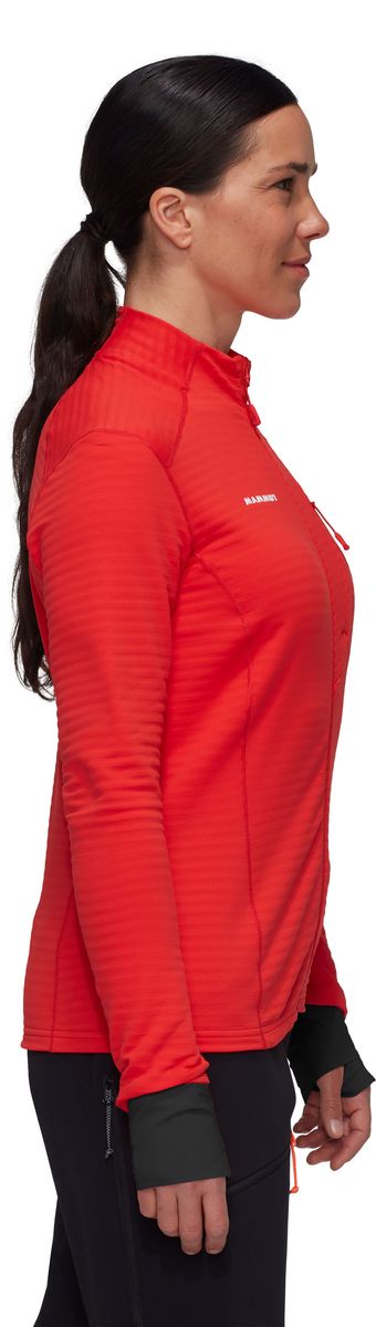 Die Mammut Taiss Light ML Jacket Women überzeugt mit ihrem leichten, angenehmen und stretchfähigen Stoff. Dank des Polyamid-Anteils ist sie zudem besonders robust. Der aktive Feuchtigkeitstransport verhindert ein rasches Auskühlen, während das Wärme- / Gewichtsverhältnis sehr gut ist. Die Jacke verfügt über eine Brusttasche mit Reißverschluss, funktionelle Unterarmzwickel für optimale Bewegungsfreiheit und Daumenschlaufen. Flache Nahtverarbeitung sorgt für einen hohen Tragekomfort und verhindert Scheuerstellen unter dem Rucksack.