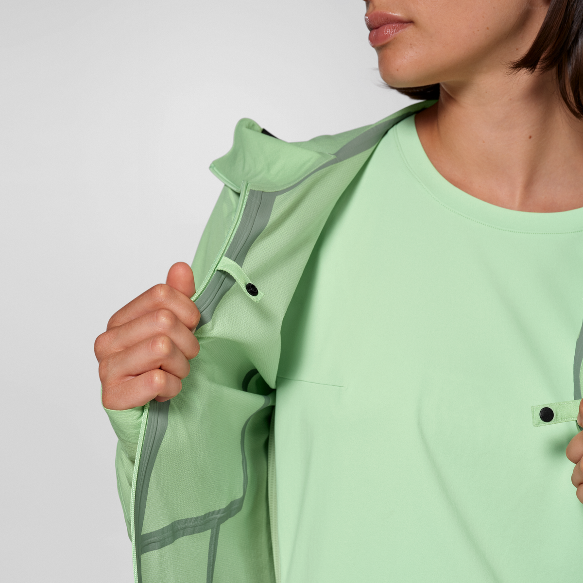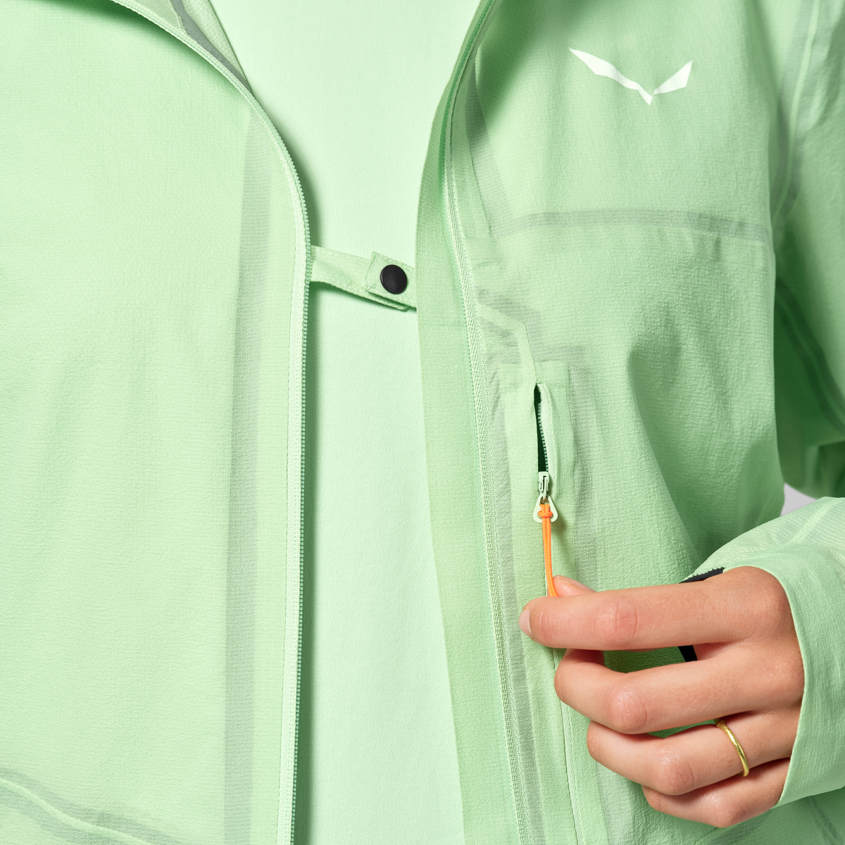 Komplett versiegelte Nähte sorgen für absolute Dichtigkeit, während elastische Ärmelbündchen und die elastische Sturmkapuze Bewegungsfreiheit und Schutz bieten. Die Druckknopf-Belüftung ermöglicht gezielte Luftzufuhr bei Anstrengung, ohne dass die Wetterschutzeigenschaften leiden.