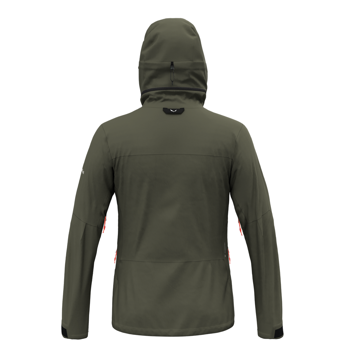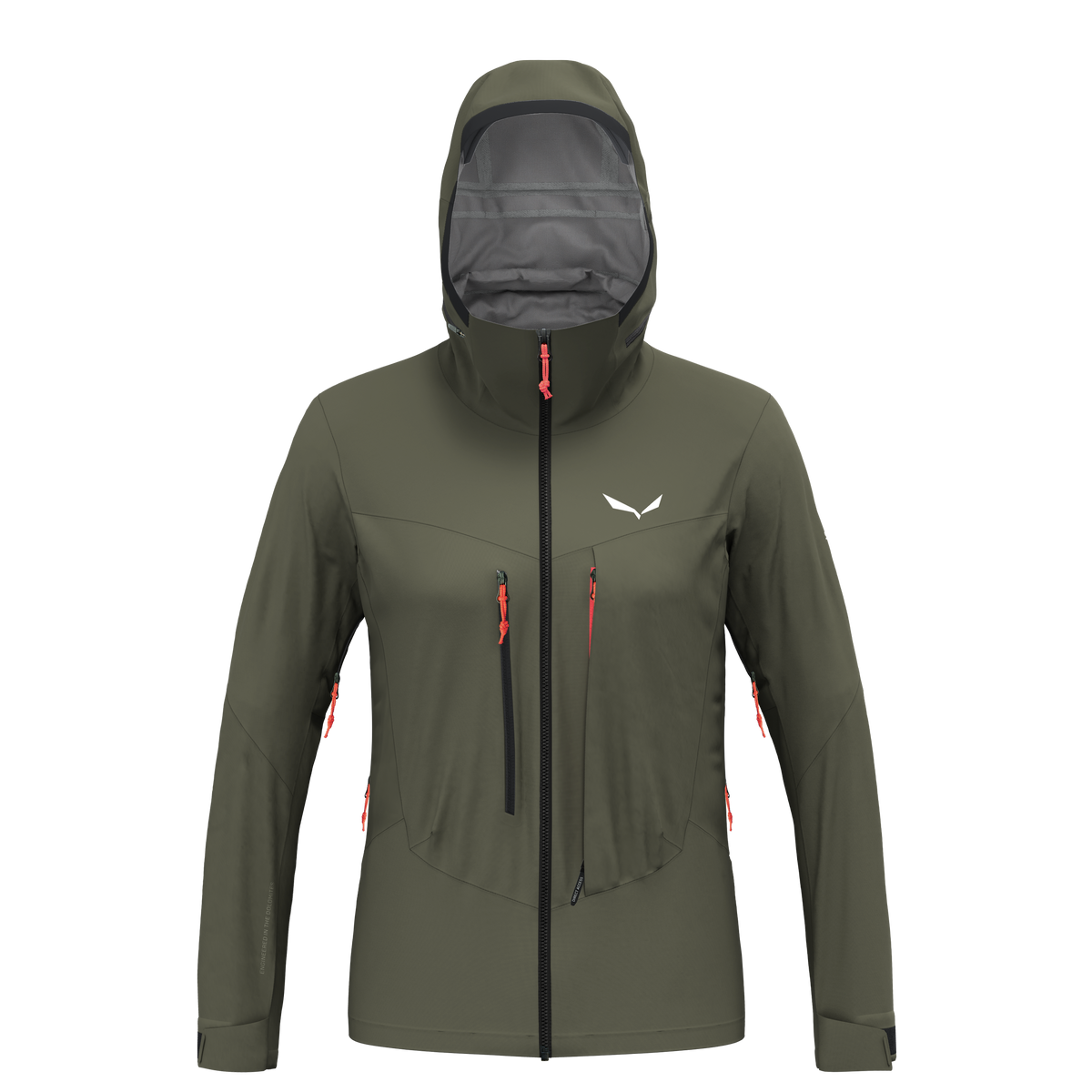 Adjustable helmet-compatible hood with zippered gusset extension, and internal 'half moon', preshaped visor. Zippered underarm ventilation. Detachable snowskirt. Chest pocket with direct-access system. Brusttasche mit Reißverschluss. Internal zippered chest pocket. Regulierbare Ärmelbündchen mit Klettverschluss. Regulierbarer Saum. Water-resistant zippers. Komplett versiegelte Nähte