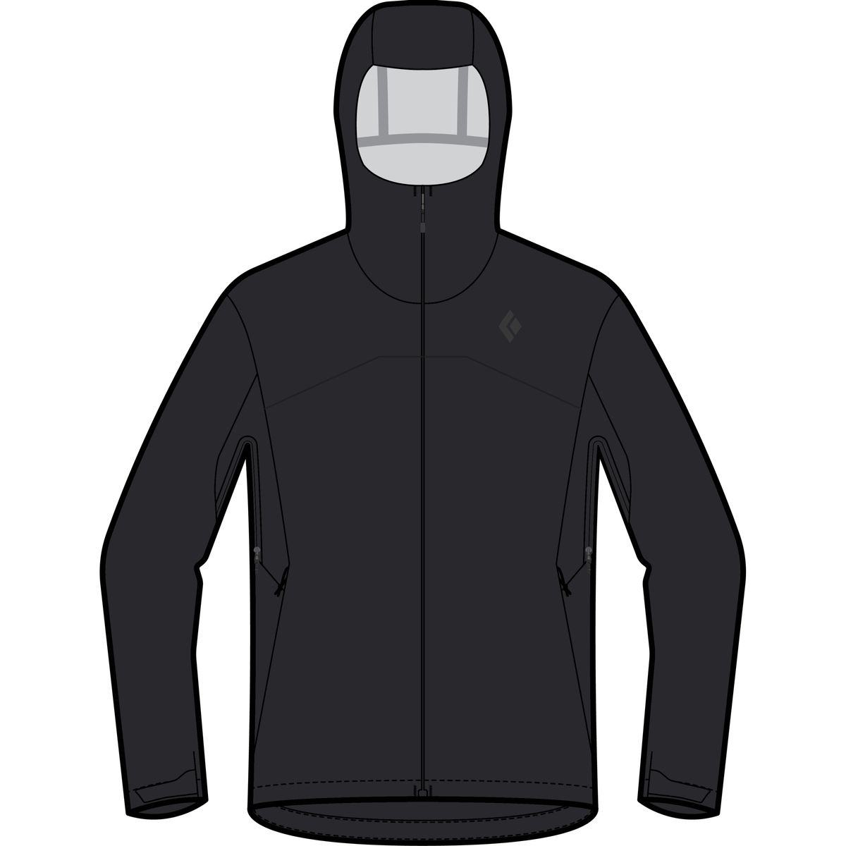 - Verstellbare, kletterhelmkompatible Kapuze