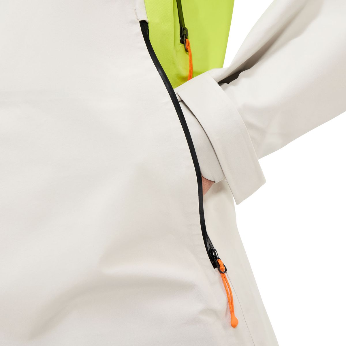 Für zusätzliche Belüftung sorgen Reißverschlüsse unter den Achseln, die bei Bedarf geöffnet werden können. Der zwei-Wege-Reißverschluss an der Vorderseite bietet vielfältige Möglichkeiten zur Luftzirkulation. Klettverschlüsse an den Ärmelbündchen und regulierbare Saumabschlüsse gewährleisten, dass du auch bei einem Sturm optimal geschützt bist.