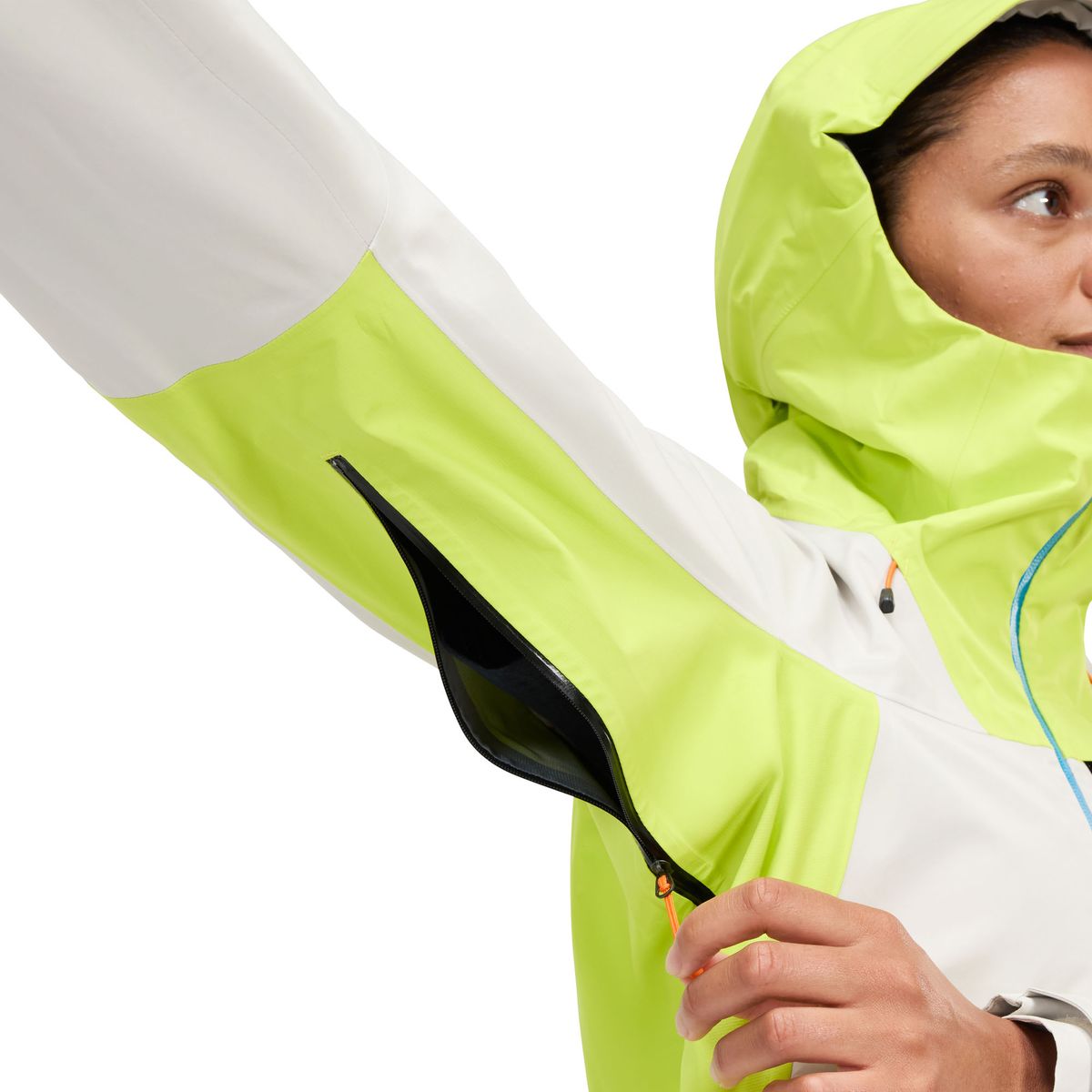 - Reißverschhlüsse unter den Achseln sorgen für Belüftung, wenn sie benötigt wird.