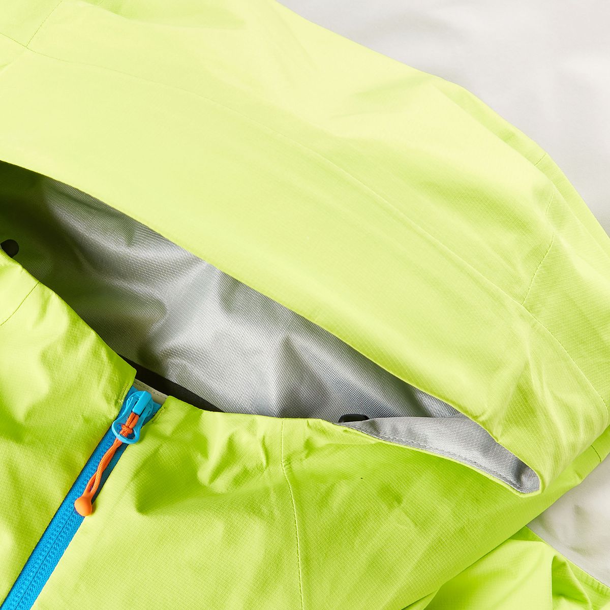 Die Jacke ist mit einer durchdachten Kapuze ausgestattet, die sich den Bewegungen anpasst und auch bei starkem Wind zuverlässig Halt bietet. Diese Kapuze ist an zwei Positionen verstellbar und kann sowohl mit als auch ohne Helm getragen werden.