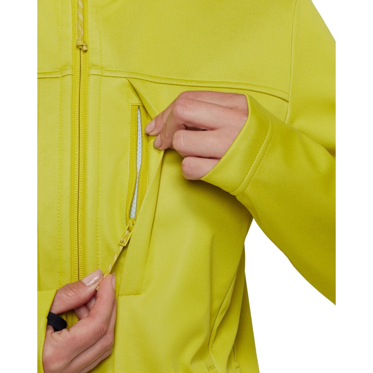 Die Jacke verfügt über einen 2?Wege-Frontreissverschluss mit Schutzpatte, eine verstellbare Kapuze mit verstärktem Schild, eine Brusttasche und zwei Fronttaschen mit Reissverschluss. Unterarm-Reissverschlüsse ermöglichen zusätzliche Belüftung, während komfortable Daumenschlaufen und ein reparierbarer Kordelzug am Saum die Alltagstauglichkeit erhöhen.