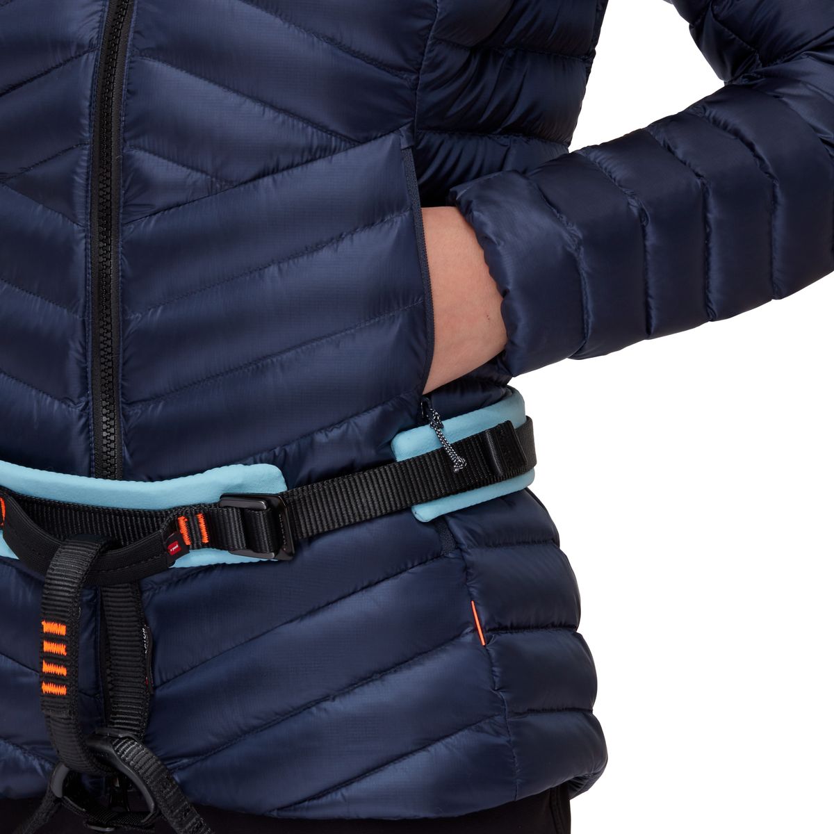 Hauptmaterial und Einsätze sind aus 100% recyceltem Polyamid gefertigt, das innen mit leichtem Polyester kombiniert wird. Technologien wie Pertex Quantum, DRY DOWN und Mammut Down stehen für effiziente Wärme, geringes Gewicht und hervorragende Packbarkeit.