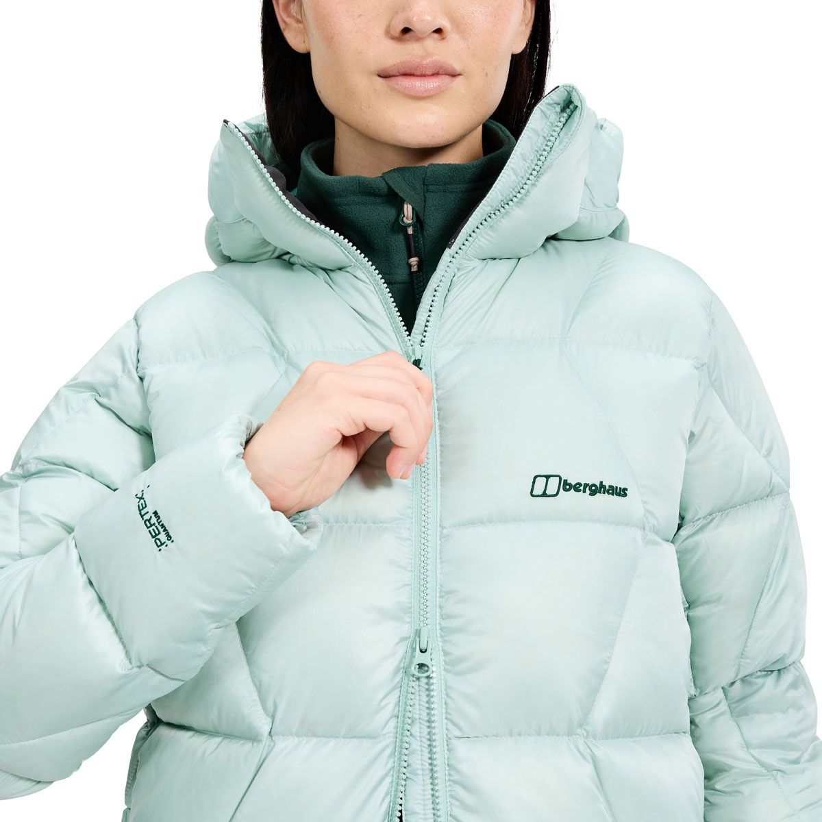 Die Jacke ist mit 650er Hydrodown gefüllt, einer wasserabweisenden Daunenfüllung von Berghaus, die auch bei Feuchtigkeit ihre Isolationsleistung behält. In Kombination mit dem dicht gewebten Pertex Quantum Außenmaterial kann die Daune optimal aufbauschen, sodass du zuverlässig vor Kälte geschützt bist.
