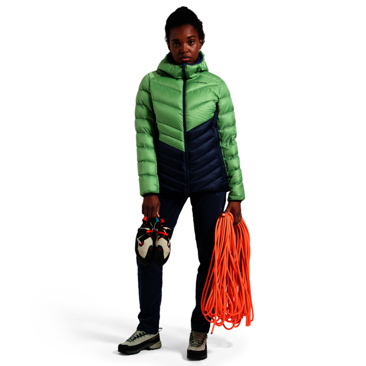 La Sportiva setzt bei diesem Modell auf recycelte Materialien und PFC-freie Ausrüstung, um die Umweltbelastung zu reduzieren. Beachte: Die Füllung enthält nichttextile Bestandteile tierischen Ursprungs (Daune).