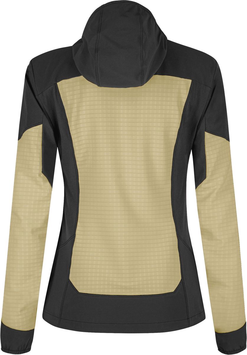 - Recyceltes Polyester-Stretchgewebe mit PFAS FREE DWR Behandlung und hybrider Double-Weave- und Softshell-Konstruktion