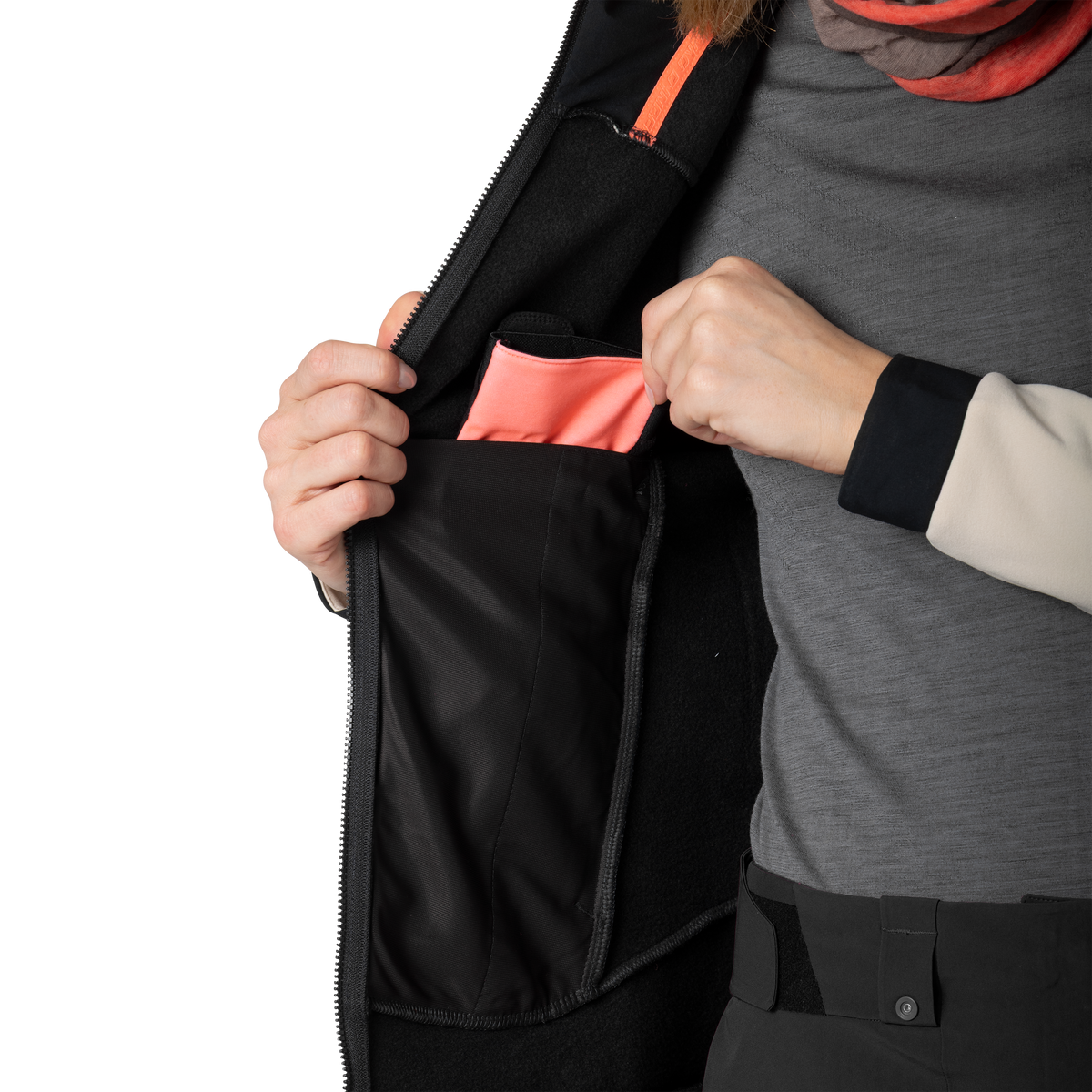 Atmungsaktiv. 4 Wege Stretch. Einschubtaschen mit Reißverschluss. Abrasion Resistant Insert. Innenliegende Mesh-Taschen. Elastische Bündchen . Elastischer Saum . Windabweisend.