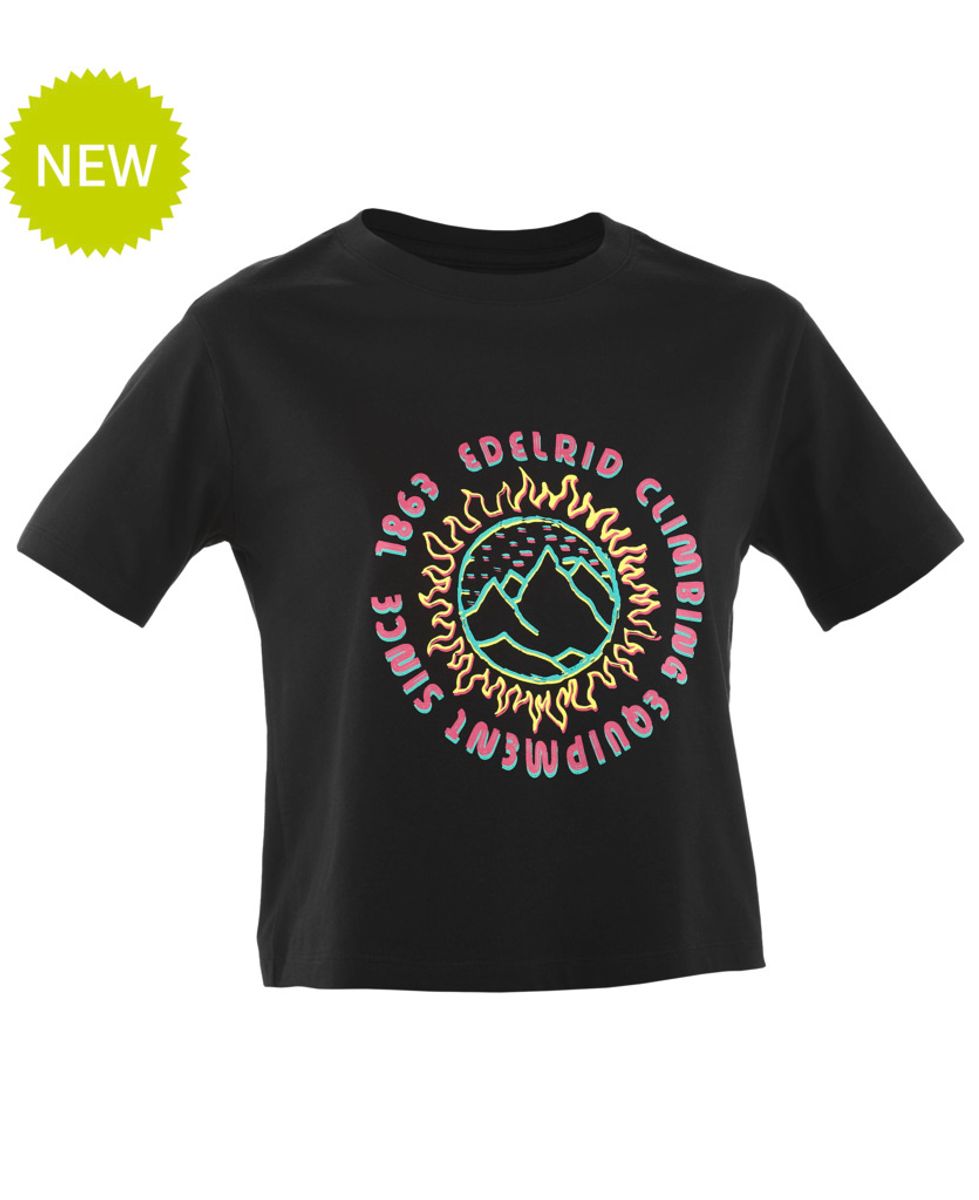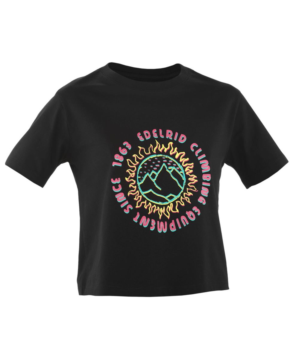 Das Edelrid Wo Crimp T-Shirt ist ein sportliches Crop-Top für Damen, das durch seine robuste Verarbeitung und das klare Grafikdesign auf der Vorderseite besticht. Es verbindet funktionale Eigenschaften mit einem lässigen Look, ideal für sportliche Aktivitäten und den Alltag.