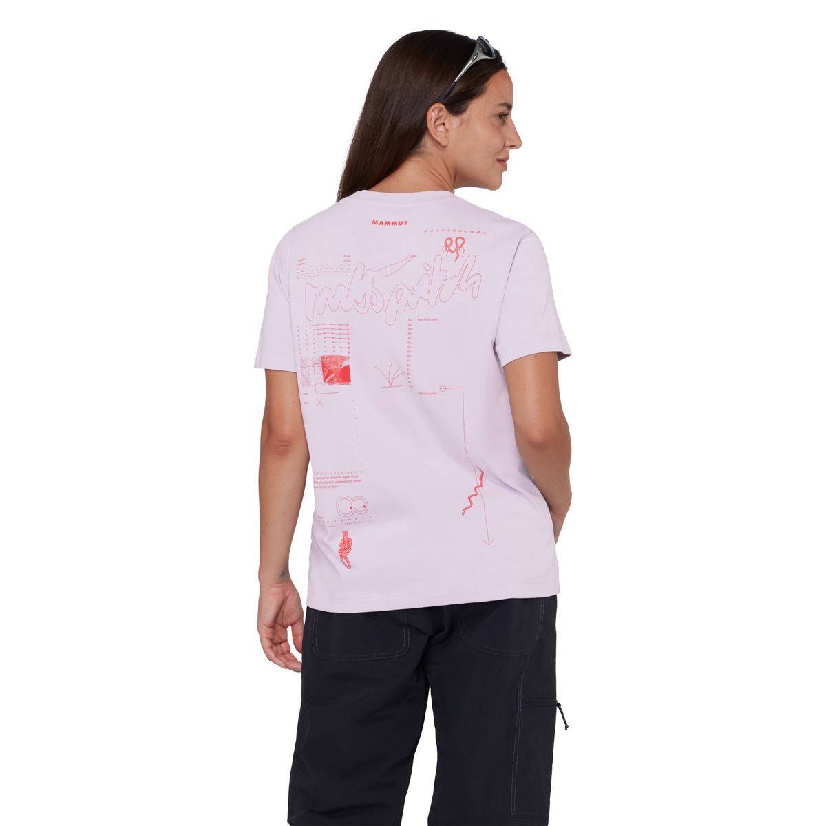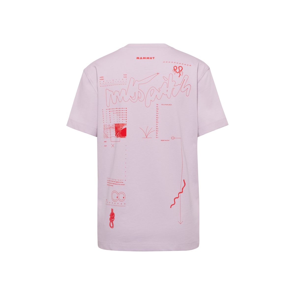 Das Mammut Base T?Shirt Women Multi?Pitch kombiniert schlichtes Design mit Funktionalität: Rundhalsausschnitt, Grafiken auf Vorder? und Rückseite und eine legere Regular?Fit?Passform. Hersteller: Mammut, Artikelnummer 1017?07630, Teil der Logowear?Kollektion.