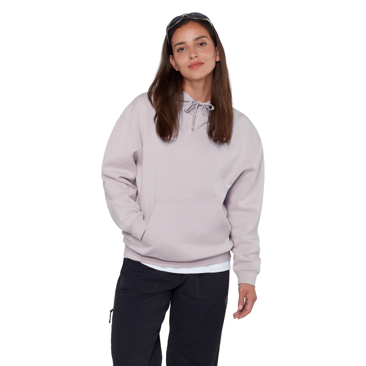 Der Relaxed Fit sitzt locker und bequem - ideal für entspannte Tage, vor oder nach Aktivitäten wie Wandern oder Klettern. Die Kapuze mit verstellbarem Kordelzug sowie die Känguru-Tasche runden den praktischen Komfort ab.