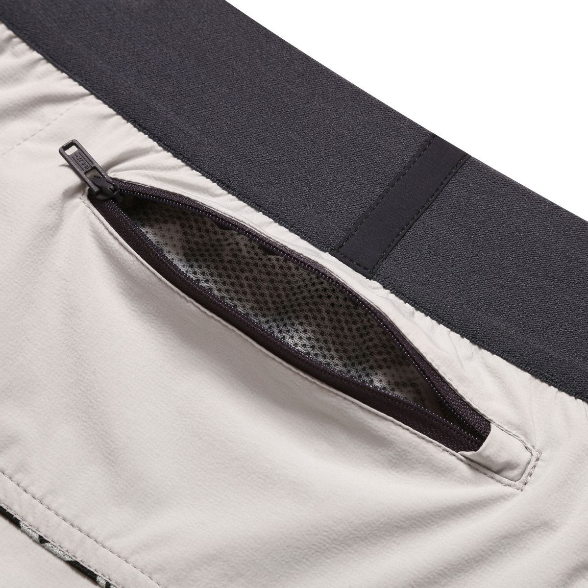 - Eine kleine reißverschlussgesicherte Gesäßtasche.