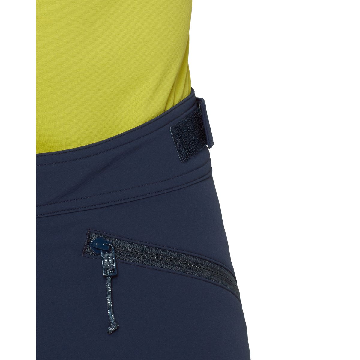 Du findest zwei Reißverschluss-Fronttaschen für Kleinigkeiten und eine Beintasche mit Reißverschluss, die klettergurtkompatibel ist - ideal, damit wichtige Utensilien auch beim Sichern oder am Standplatz griffbereit bleiben. Alle Verschlüsse sind robust ausgeführt und für alpine Beanspruchung konzipiert.