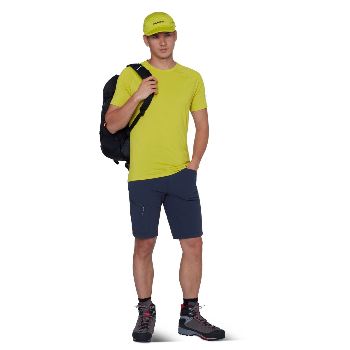 Hauptmaterial: 92?% recyceltes Polyamid und 8?% Elastan - das Ergebnis ist ein leichtes, zugleich strapazierfähiges Material mit gutem Rückstellvermögen. Die Mammut FLEXGUARD Active Technologie kombiniert Schutz und Elastizität für technische Bewegungen.
