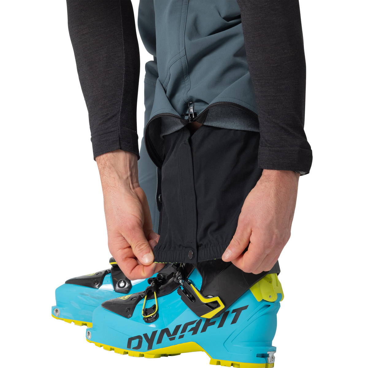 Die integrierten Gamaschen bieten zusätzlichen Schutz vor Schnee und machen die Hose ideal für winterliche Bedingungen. Du kannst den Beinabschluss mithilfe eines Reißverschlusses erweitern, sodass die Hose auch im Aufstieg bequem über die meisten Tourenskischuhe passt. Zusätzliche Robustheit erhält die Hose durch den verstärkten Kantenschutz am Saum, der Abnutzung durch Skikanten vorbeugt.