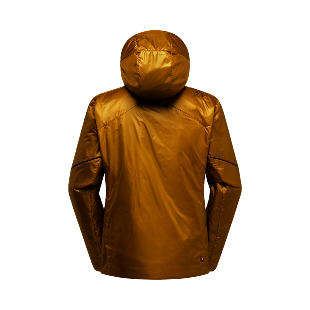 Die PrimaLoft Gold-Isolierung ist body-mapped: 60 g/m² im Vorder- und Rückbereich für Kernwärme, 40 g/m² an Ärmeln, Seiten und Kapuze für Beweglichkeit. Die Schicht sorgt für ein gutes Verhältnis aus Wärme bei wenig Gewicht, ideal bei wechselnden Belastungen am Berg.