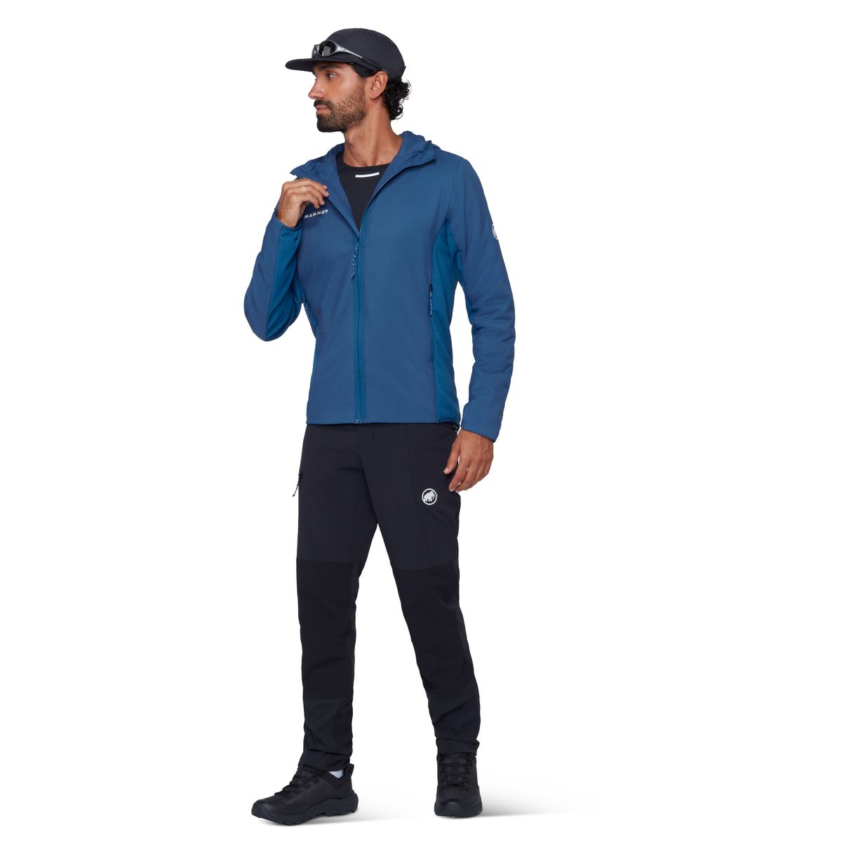 Das Hauptmaterial besteht zu 100% aus recyceltem Polyamid, die Einsätze aus recyceltem Polyester mit Elastan-Anteil und das Futter ebenfalls aus recyceltem Polyamid. Die Füllung ist Mammut LOOPINSULATION (40 g/m²) aus 100% recyceltem Polyester.