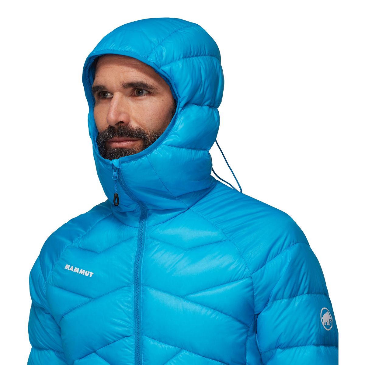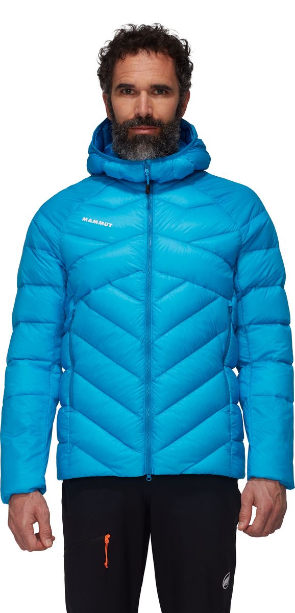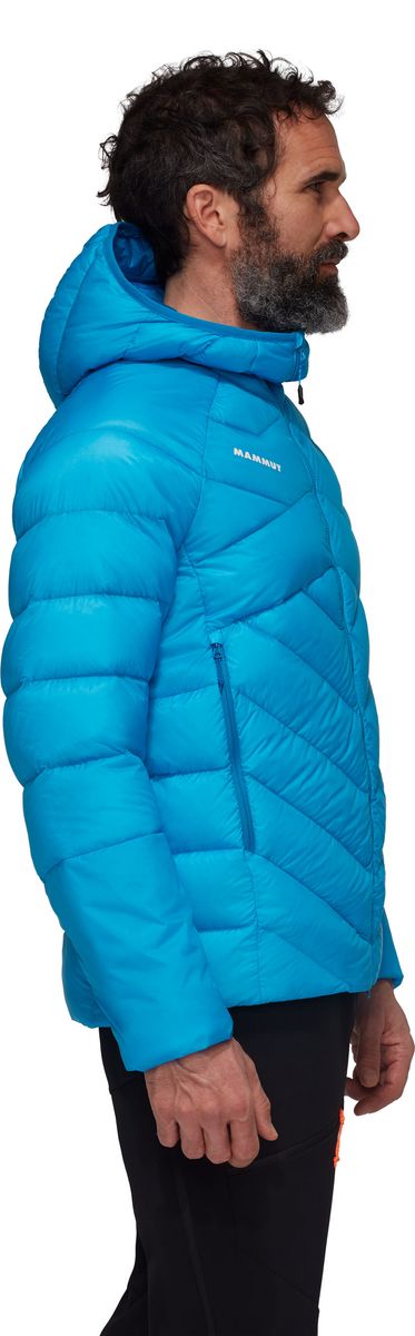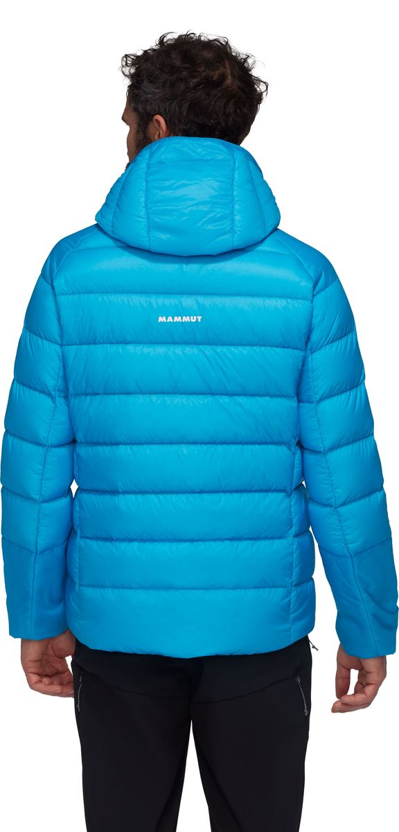 Mammut legt großen Wert auf Nachhaltigkeit: Die Jacke besteht aus recycelten Materialien und ist PFC-frei beschichtet. Die Daunenfüllung stammt aus verantwortungsvoller Gewinnung, und die Herstellung erfolgt gemäß den Fair Wear-Standards.