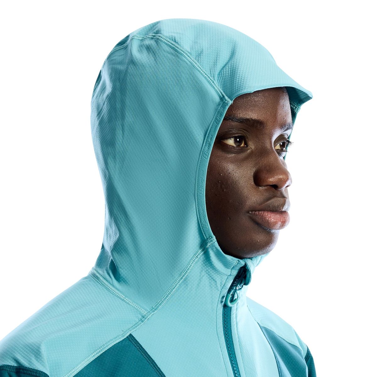 - Ein eingefasster Kapuzenschirm schützt dich vor den Elementen und bietet ein großes Sichtfeld.