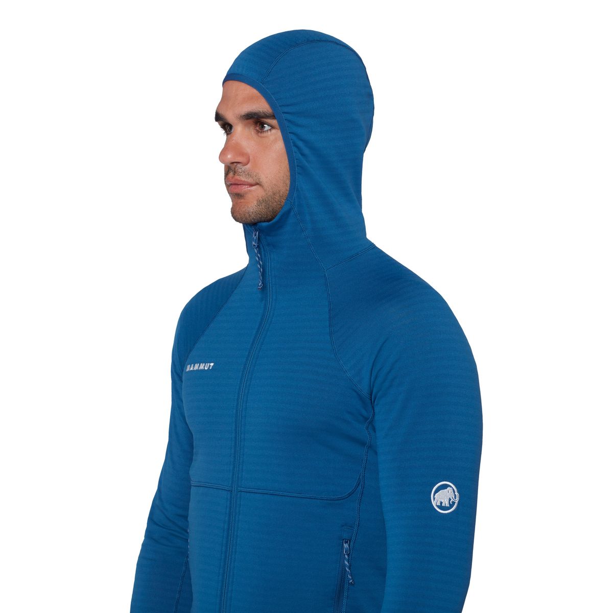 Flache Nähte reduzieren Scheuerstellen bei langem Tragen unter dem Rucksack, das gestickte Mammut?Logo setzt dezente Akzente. Gewicht und Schnitt machen die Jacke zur idealen Zwischenschicht beim Klettern, Bergsteigen und beim Ski?Touring.