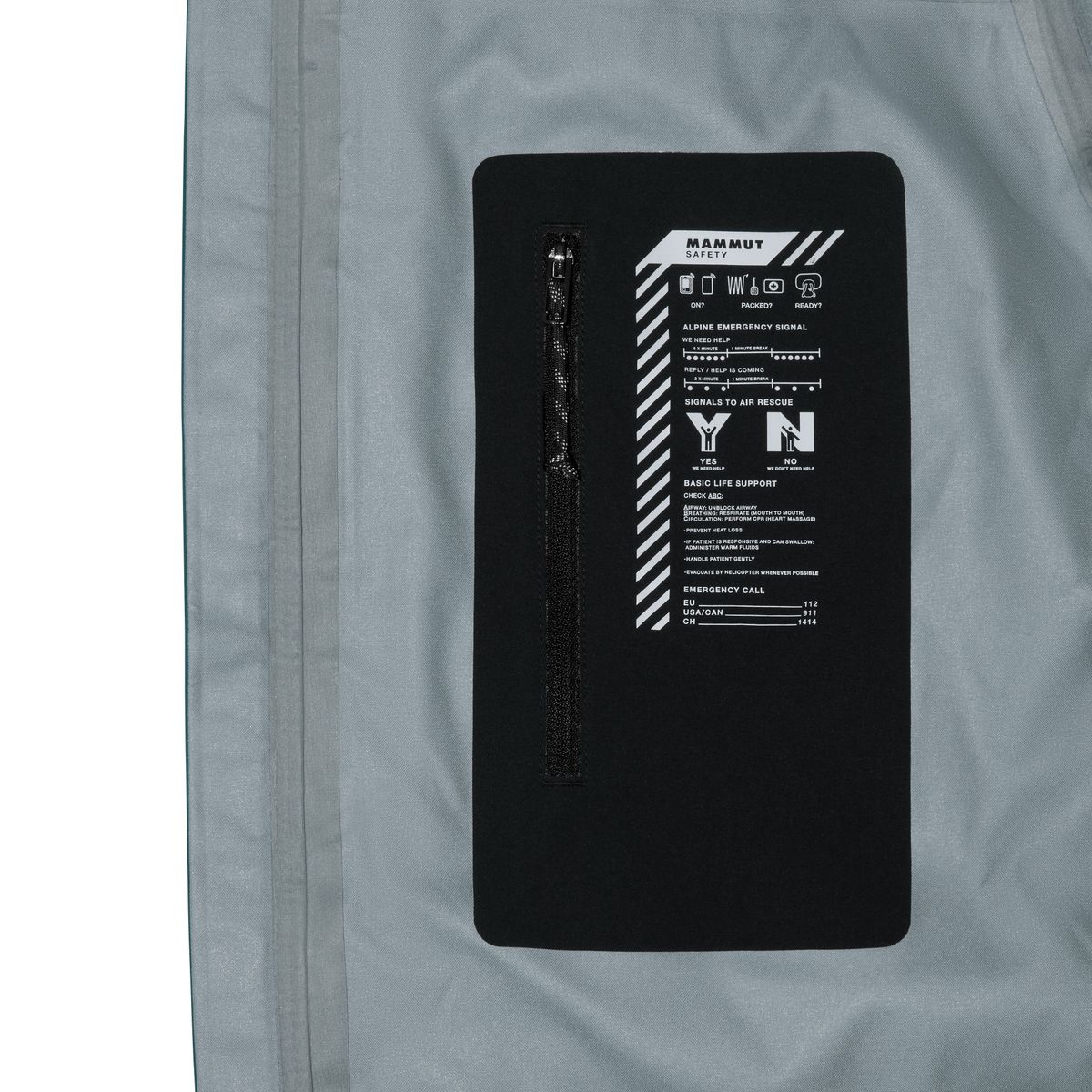 Das Hauptmaterial der Jacke besteht zu 52% aus recyceltem Polyamid und zu 48% aus Polyamid, während das Futter aus 100% Polyamid gefertigt ist. Die Jacke integriert eine Polyurethan-basierte Membran und nutzt die Mammut DRY Expedition Technology, die eine Wassersäule von 30.000 mm bietet. Somit bist du perfekt gegen Nässe geschützt, egal unter welchen Bedingungen.
