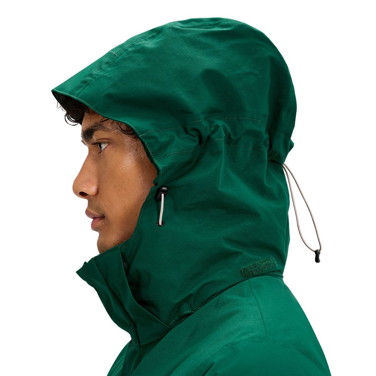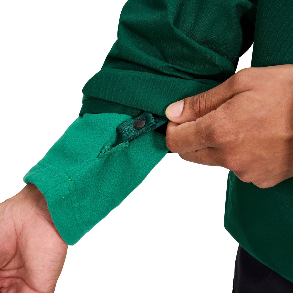 Die 2?lagige GORE-TEX ePE-Außenjacke ist wasserdicht, atmungsaktiv und PFAS-frei, was den CO2-Fußabdruck reduziert. Eine doppelte Sturmklappe am durchgehenden Frontreißverschluss und die doppelte Saumanpassung halten Wind und Nässe zuverlässig fern.