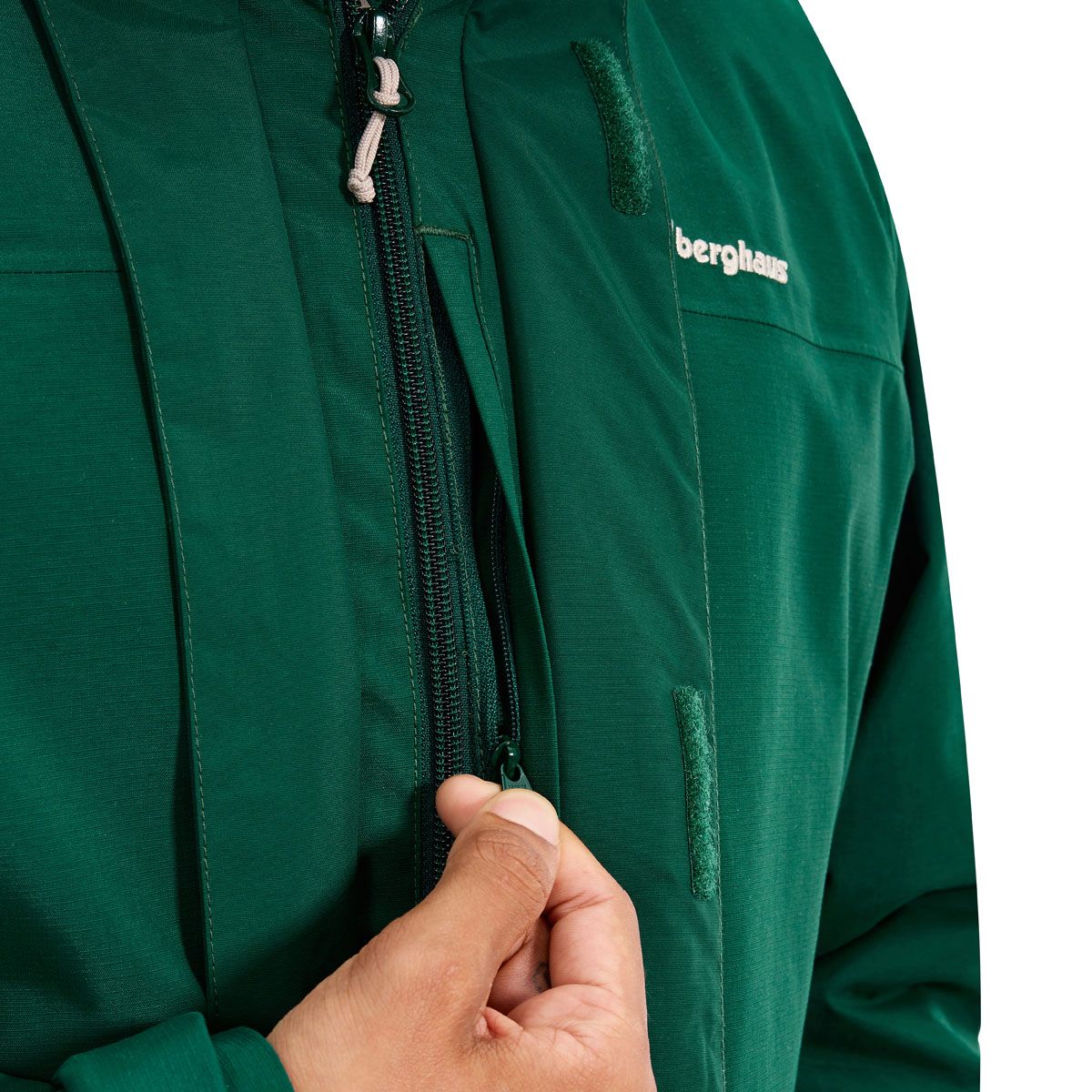 Die InterActive-Frontreißverschlüsse und Befestigungspunkte erlauben dir die Kombination mit jedem kompatiblen Midlayer von Berghaus für zusätzliche Wärme. Die einstellbare Kapuze lässt sich bei Bedarf ordentlich verstauen, und die Verstellmöglichkeiten an Ärmeln und Saum sorgen für eine individuelle Passform.