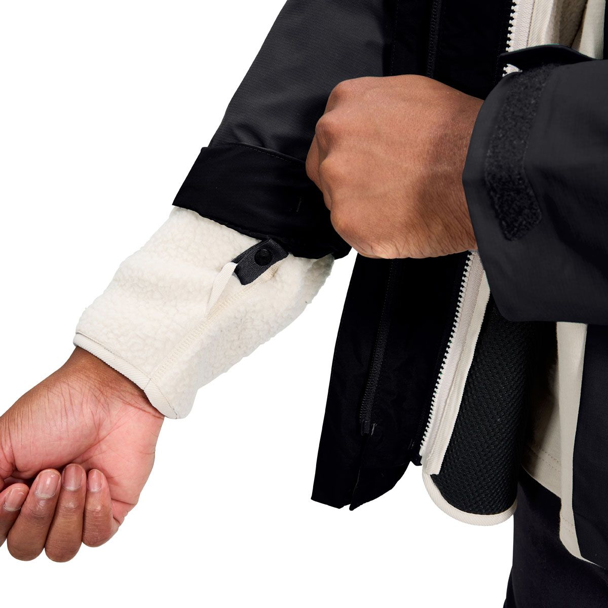 - Eine doppelte Sturmklappe am durchgehenden Frontreißverschluss bietet ultimativen Schutz vor eindringendem Wasser.
