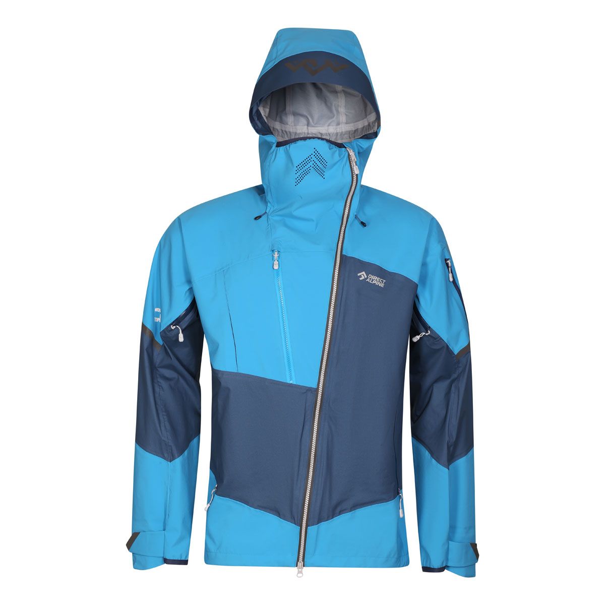 Feste und widerstandsfähige Kapuze mit Formeinstellung in mehreren Richtungen, kann über einem Helm getragen werden., Erhöhte vordere Kragenpartie zum Schutz des Gesichts, Lüftungsöffnungen, asymmetrischer zentraler Reißverschluss, der nicht in den Gesichtsbereich hineinragt, bei geöffneter Jacke kann der Rand ins Innere der Kapuze zurückgeschlagen werden (Magnetbefestigung)., Verstärkung aus einem stabileren Gewebe in allen stärker beanspruchten Partien, an den Schultern, den Ärmeln, der Kapuze und im hinteren Bereich., Die Reißverschlüsse der auch mit Rucksack gut erreichbaren Lüftungsöffnungen an den Seiten sind in den vorderen Bereich vorgezogen, was die Taschen in den unteren Schichten gut erreichbar macht., Zentraler Zwei-Wege-Profilreißverschluss mit innerer Reißverschlussblende., Hergestellt in Europa, Berg, Expeditionen,Eisklettern,Skitouren,VHT, Via ferrata,, Wasserdichte