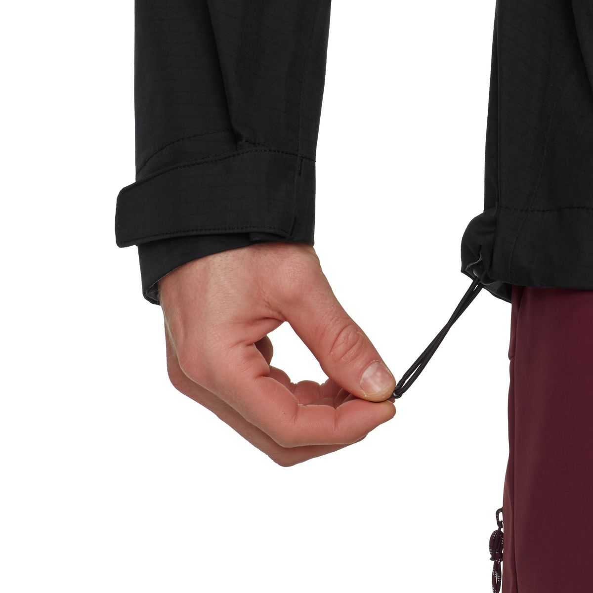 Praktische Details wie zwei klettergurt- und rucksackkompatible Fronttaschen mit Cross?Over?Eingriff, eine Reißverschluss-Innentasche, vorgeformte Ärmel mit Klettverschluss-Abschlüssen und ein gut zugänglicher Saum-Kordelzug machen die Jacke zu einem funktionalen Begleiter am Fels und im Gelände.