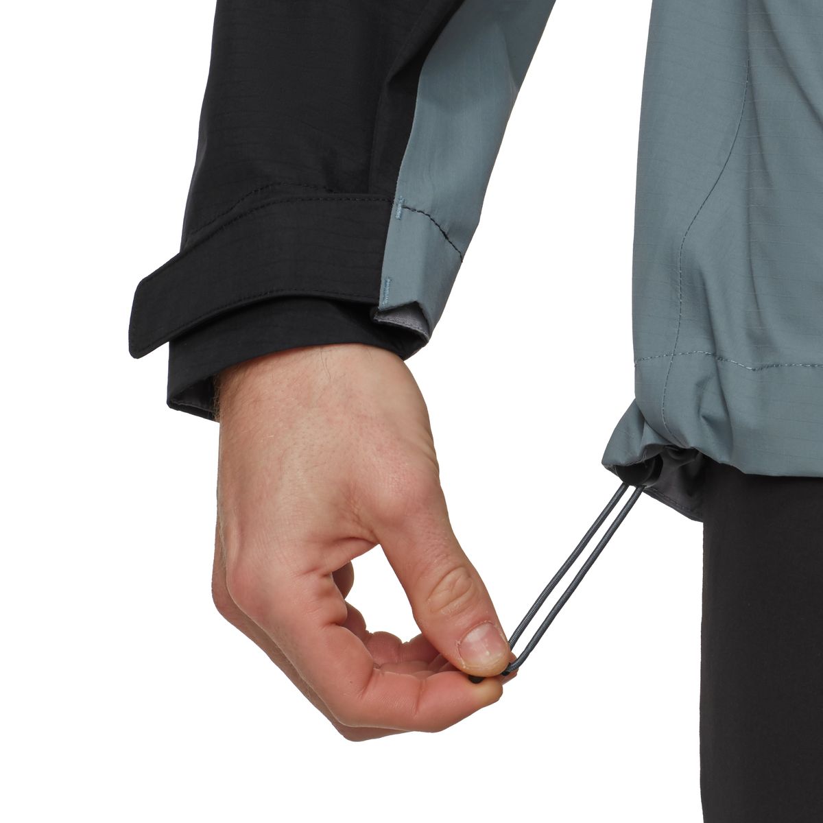Praktische Details wie zwei klettergurt- und rucksackkompatible Fronttaschen mit Cross?Over?Eingriff, eine Reißverschluss-Innentasche, vorgeformte Ärmel mit Klettverschluss-Abschlüssen und ein gut zugänglicher Saum-Kordelzug machen die Jacke zu einem funktionalen Begleiter am Fels und im Gelände.