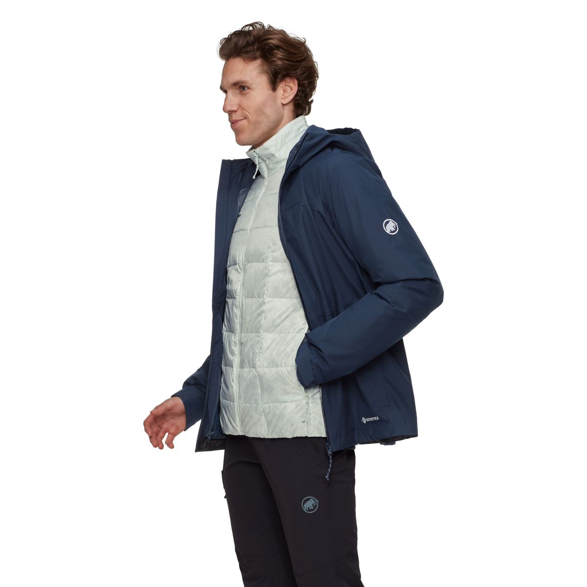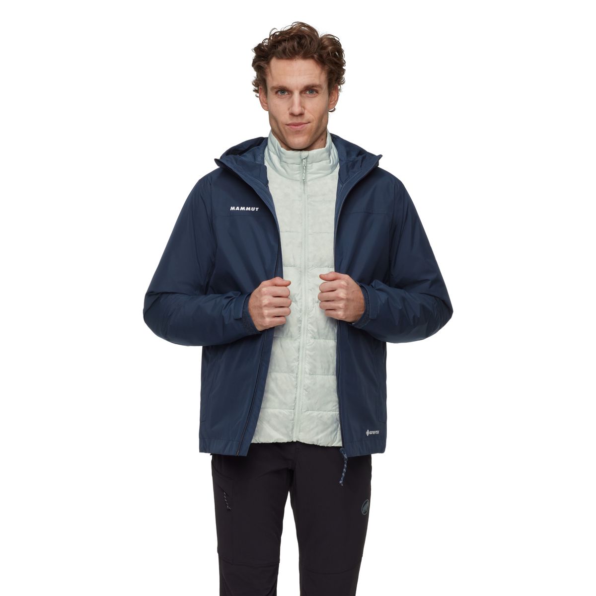 Die Treeline 3 in 1 HS Hooded Jacket von Mammut kombiniert eine wind- und wasserdichte Aussenhülle mit einer leichten, wärmeisolierenden Innenjacke mit recycelter Daune. Du kannst die beiden Lagen miteinander verbinden oder einzeln tragen - so bist du flexibel auf wechselnde Bedingungen unterwegs.