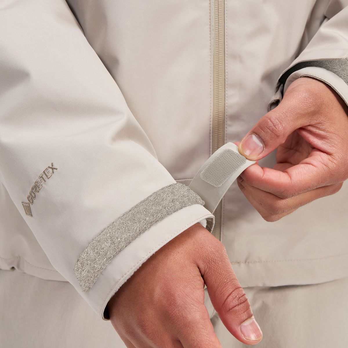 Mit dem GORE-TEX Außenmaterial bleibt die Feuchtigkeit draußen, sodass du immer trocken bleibst, egal wie nass es draußen ist. Die wasserdichten Reißverschlüsse verhindern zusätzlich das Eindringen von Regen und sorgen dafür, dass du vollständig geschützt bist.
